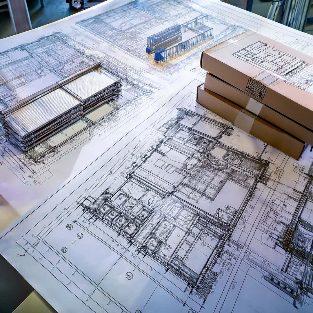 Professional technical drawings and blueprints for packaging manufacturing, ensuring seamless production and assembly.